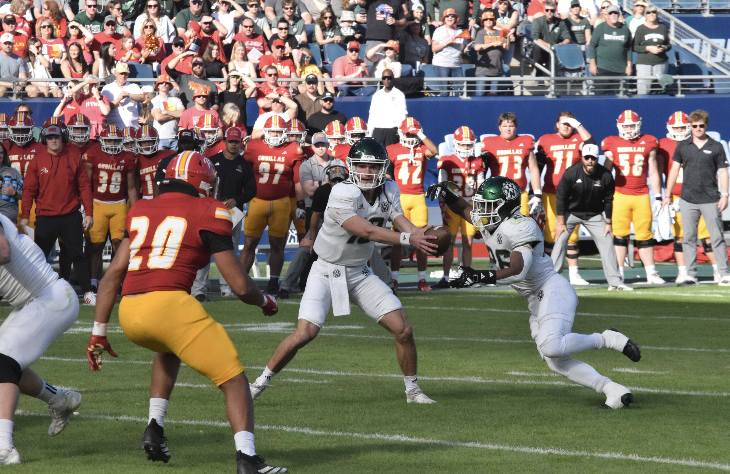 After scoring on the first drive of the game, Northwest struggled to continue that momentum for the rest of the half, as they were unable to recover from four lost fumbles. The Gorillas took a 24-7 lead into halftime following a touchdown from a fumble recovery and a field goal late in the second quarter.