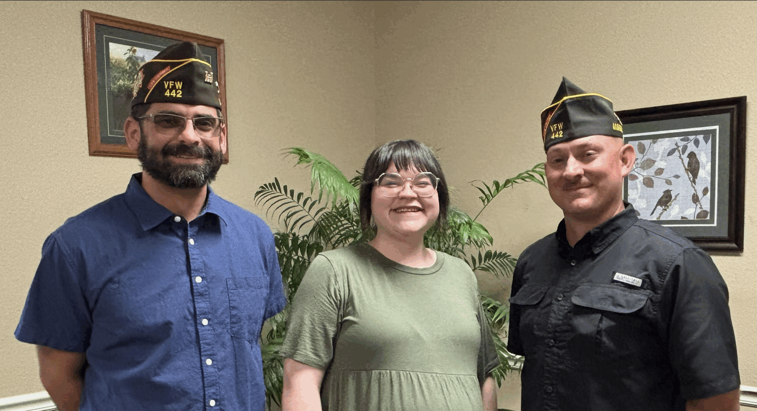 VFW Post 442, October 16, donated $200 to Community Services for its veterans fund. At the presentation were Brandon Woerth, Sydney Lyle and Aaron Brown.
